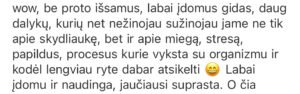 Kai tik sužinojau, kad turiu skydliaukės problemų pirma atėjusi mintis – ,,o tai įmanoma sutvarkyti? Kodėl man taip? Ką dariau blogai? Kaip sau padėti be vaistų” (nesakau, kad vaistai blogas sprendimas, bet aš esu už sveikatos gerinimą pirmiausia per kasdienius įpročius ir mitybą). Daug laiko praleidau domėdamasi kaip sau padėti, nes jaučiausi labai vangi, gyvenau su pastoviais pilvo pūtimais, augančiu svoriu ,,iš oro” ir nežinojimu ką daryti toliau.